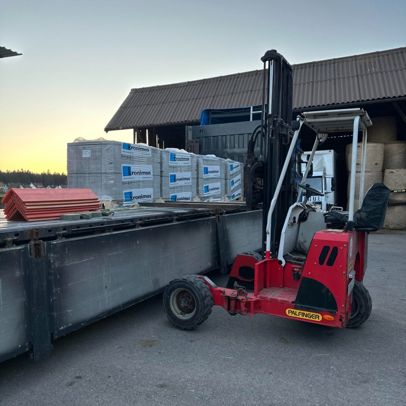 Mit unserem Mitnahmestapler sorgen wir für eine flexible und präzise Entladung direkt vor Ort – ideal für Baustellen und schwer zugängliche Bereiche. Unser Stapler ist vollständig baustellentauglich und hebt Lasten bis zu 2.000 kg.